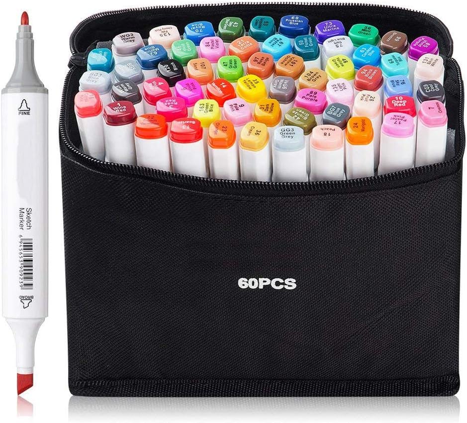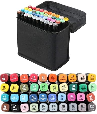 Ohuhu 80 Pennarelli Indelebili A Doppia Punta Evidenziatori Con Borsa Da Trasporto Per Colorare Dipinti Evidenziare E Sottolineare
