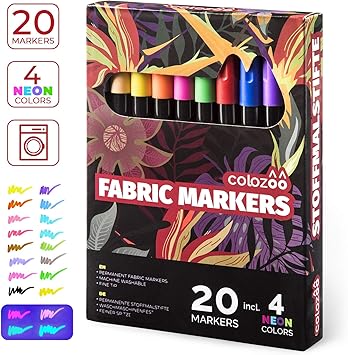Colozoo Colori Per Stoffa Pennarelli Per Tessuti Set Da 20 Colori Assortiti Pennarelli Tessuto Indelebili Pennarello Indelebile Per Tessuti Atossici E Vegan Pennarelli Tessuti Amazon It Fai Da Te