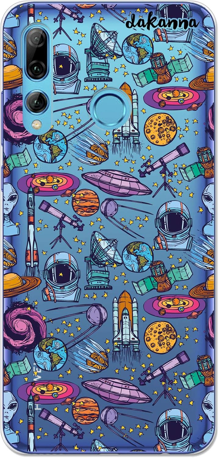 Dakanna Custodia Per Huawei P Smart Plus 2019 Sfondo Trasparente Con Disegni Simboli Spaziali Astronauta Alieni Pianeti Nave Luna E Telescopio In Morbida Silicone Tpu Flessibile Amazon It Elettronica