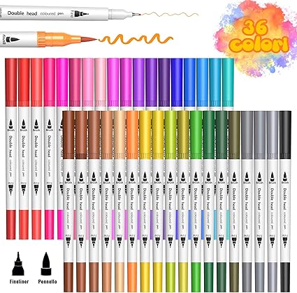 Boiros Brush Pen Da 36 Colori Penne Colorate Pennarelli Doppia Punta Grossa Fine Ad Acquerello Evidenziatori Pastello Da Pittura Per Lettering Bullet Journal Colorare Disegnare E La Scuola Amazon It Cancelleria E Prodotti