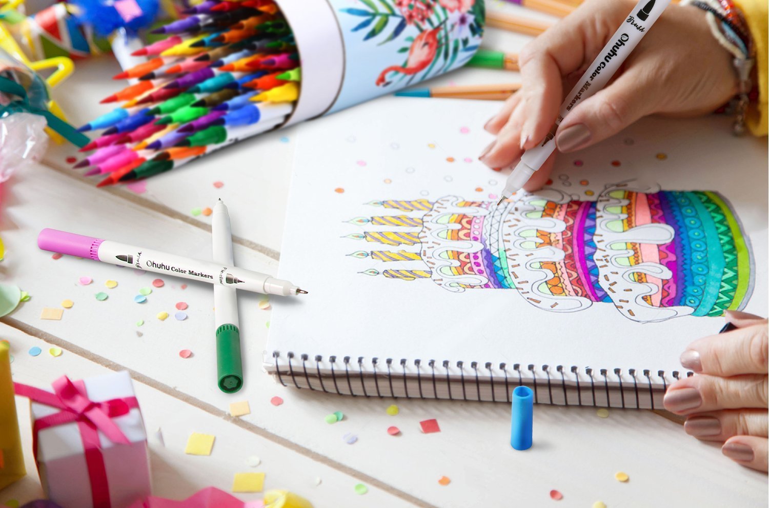 Ohuhu Pennarelli Artistici A Doppia Punta 60 Colori Pennello Per Colorare Tratto Definito Penne A Colori Pennarello A Base D Acqua Pennarelli Evidenziatori Per Calligrafia Per Disegni Schizzi Amazon It Cancelleria E Prodotti Per