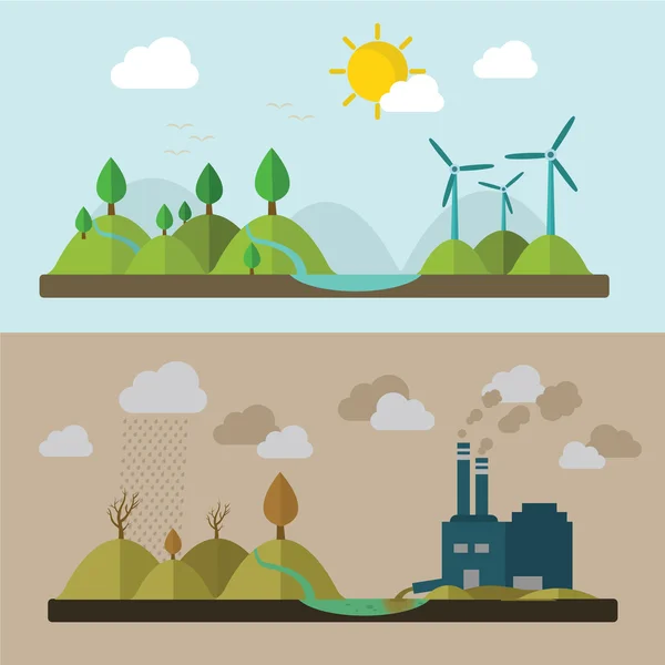 Insieme Di Concetti Di Ecologia Per I Disegni Di Inquinamento Dell Ambiente Dell Energia Verde E Della Natura Deforestazione Di Centrali Nucleari Stile Piatto Vettore Premium