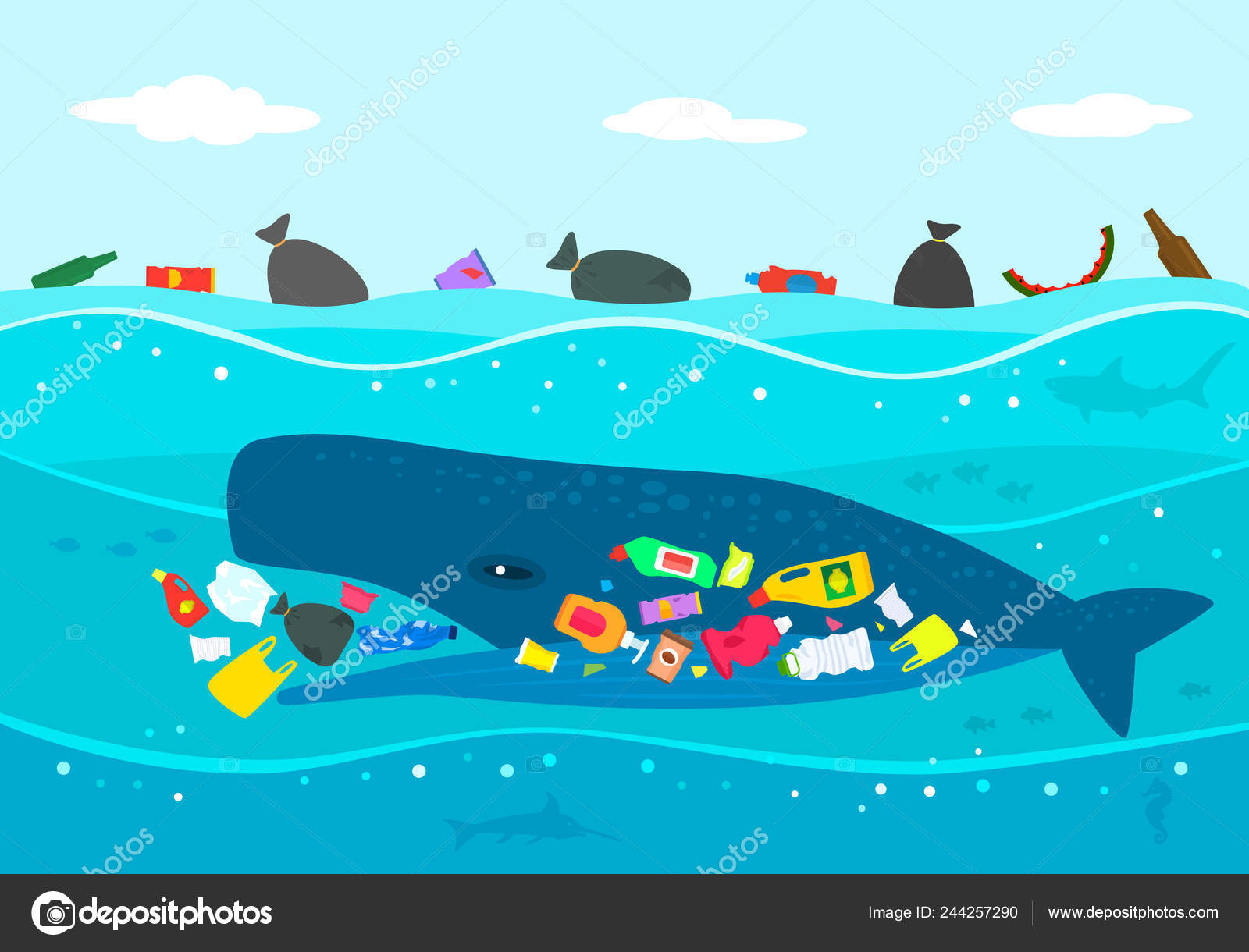 Illustrazioni Immagini E Grafica Vettoriale Stock A Tema Inquinamento Mare Plastica Shutterstock
