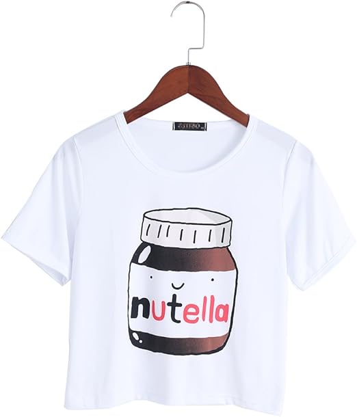 Harajuku Fitness Maglietta A Maniche Corte Da Donna Con Stampa Con Disegno Kawaii Di Un Barattolo Di Nutella Large Bianco Amazon It Casa E Cucina