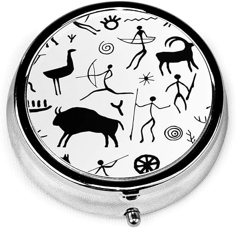 Portapillole Rotondo Con Scatola Da Viaggio Con 3 Pillole Disegni Roccia Grotta Petroglifo Nero Su Uomo Delle Caverne Eta Antica Amazon It Salute E Cura Della Persona