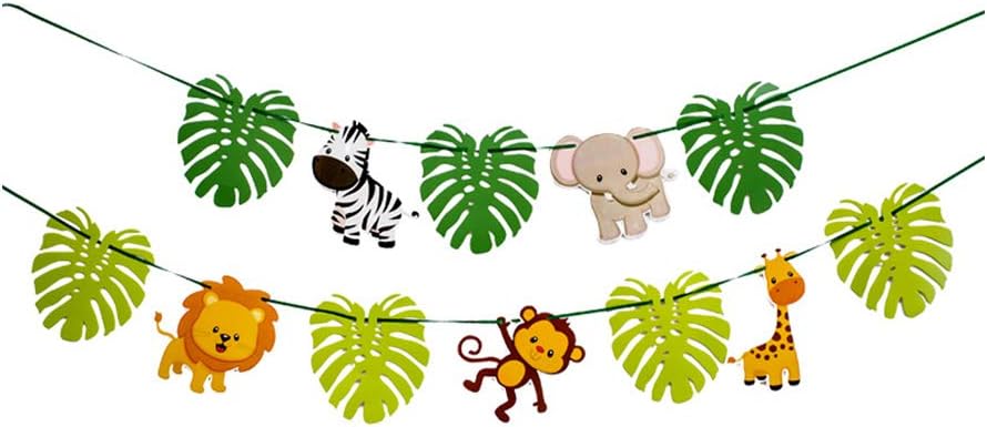 Unicoco Striscione Decorativo Per Festa Di Compleanno Baby Shower Festone Con Animali Della Giungla E Foglie Stile Cartone Animato Amazon It Casa E Cucina
