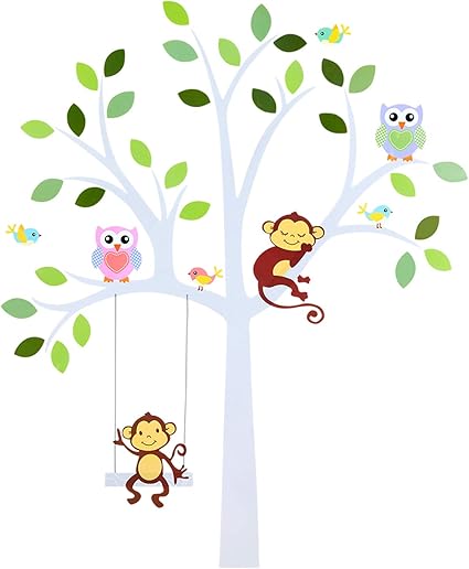 Talinu Adesivi Da Parete Motivo Albero Con Foglie E Animali Adesivi Per Pareti Tatuaggio Da Parete
