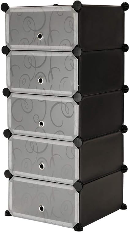 Primematik Armadio Guardaroba Scaffale Modulare Di 5 Cubi 17x35cm Nero Con Porte E Disegni Organizzazione Interni Organizzazione Guardaroba