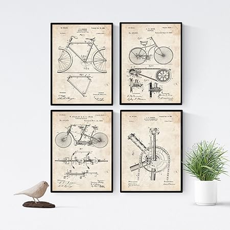 Nacnic Set 4 Stampe Artistiche Sfondo Vintage Rappresentazione In Primo Piano Di Bici D Epoca Brevetto