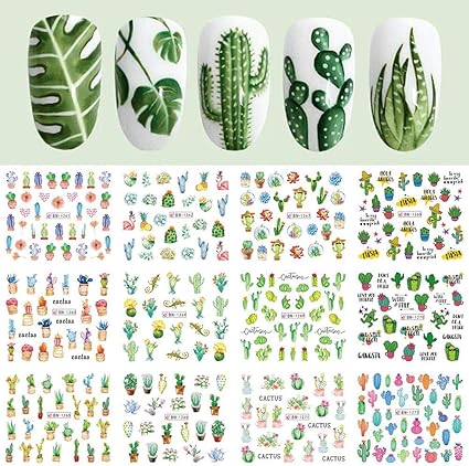 12 Disegni Cactus Acqua Decalcomanie Autoadesivo Del Chiodo Pianta Verde Foglia Filigrana Fiocchi Cursore Cursore Nail Art Decorazione Amazon It Bellezza