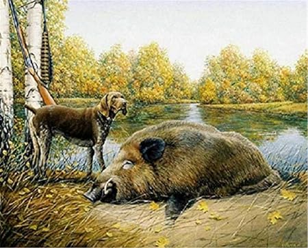 Fai Da Te Pittura Ad Olio Per Numero Kit Pittura Paintworks Cane Da Caccia E Cinghiale Immagine Di Arte Della Parete Disegno Con Spazzole 40x50cm Frameless Decorazioni Di Natale Decorazioni Regali Amazon It