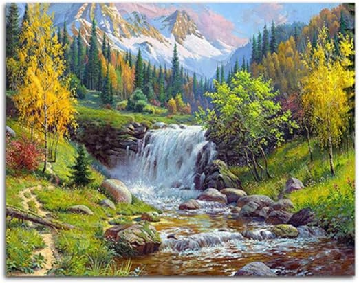 Fuumuui Fai Da Te Fai Da Te Pittura A Olio Su Tela Regalo Per Adulti Bambini Dipingere Da Numero Kit Decorazioni Per La Casa Cascata Blu 16 20 Pollici Amazon It Giochi E Giocattoli