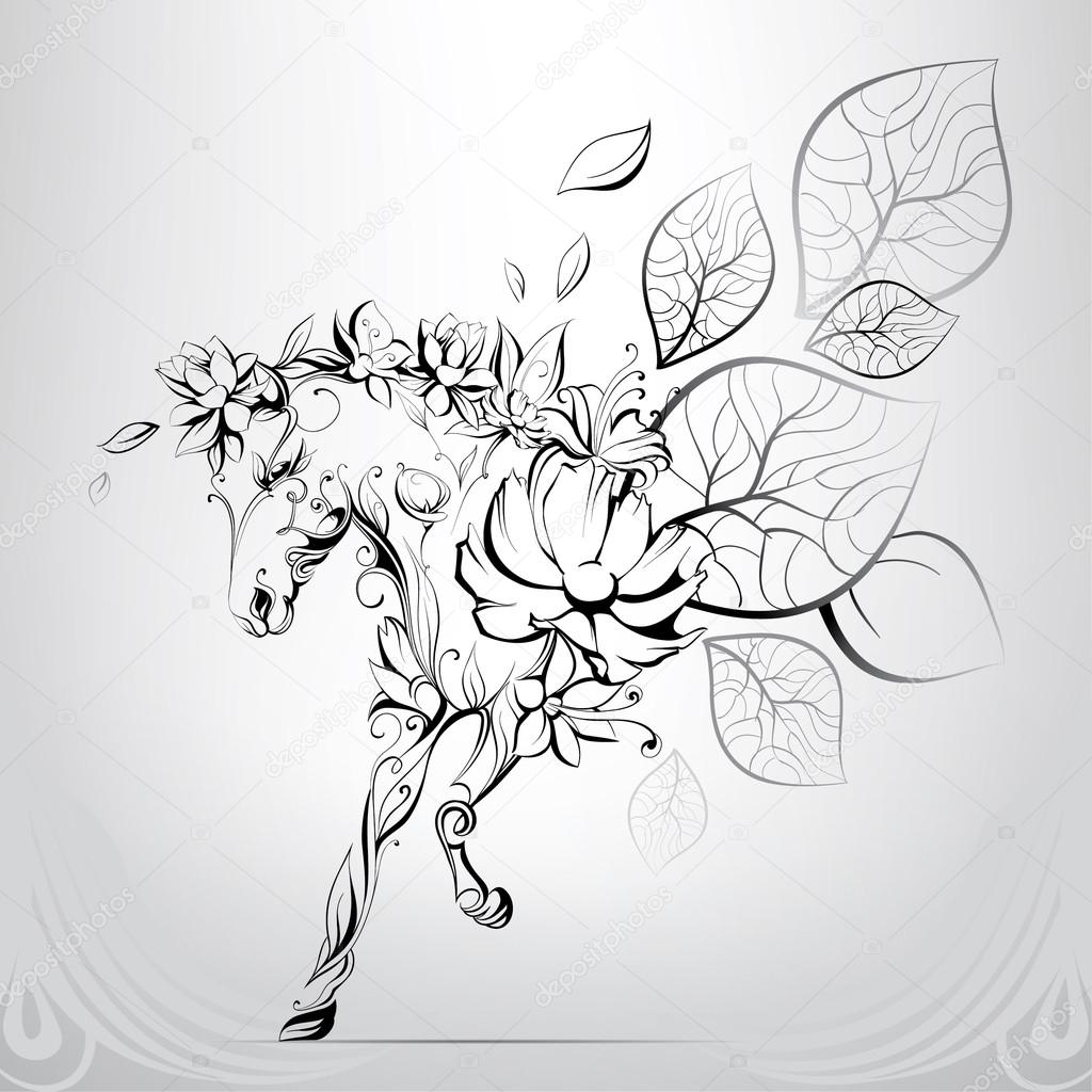 Fantastico Disegno Cavallo Tatuaggio Schizzo Unicorno Ondulato Fantastico T Shirt Lungo O Disegno Tatuaggio Canstock