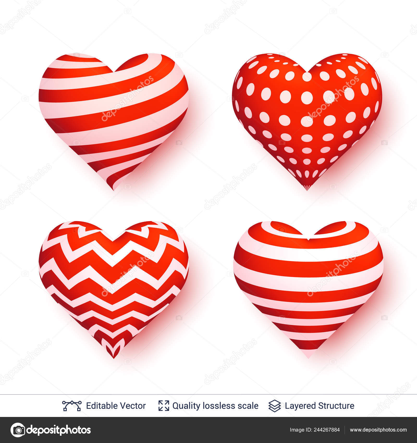 Set Of 3d Hearts With Red And White Patterns Stock Vector C Chuhail 244267884
