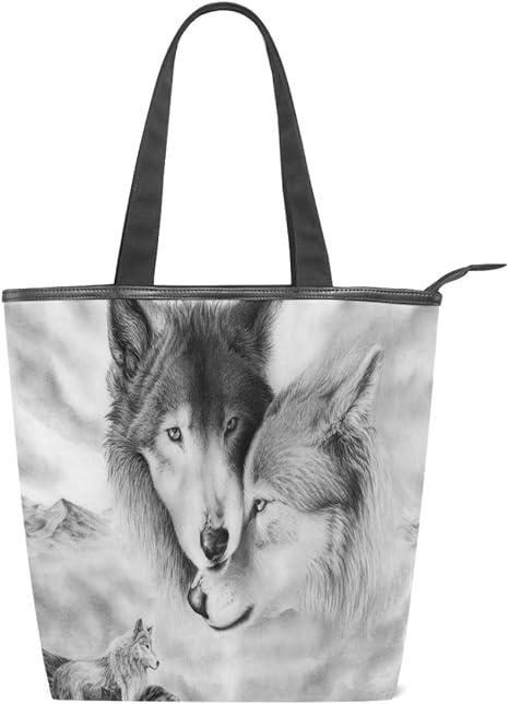 Borsa Da Donna In Tela Con Disegni Di Lupo Colore Bianco E Nero Con Animali Per Ragazze Per Scuola Viaggi Palestra Uso Quotidiano Amazon It Valigeria
