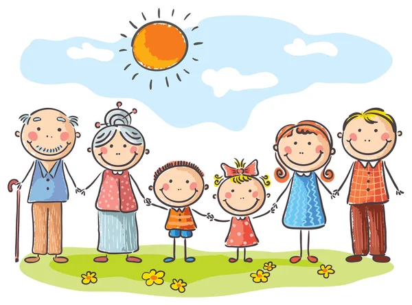 Vettoriale Disegno Di Un Grande Ritratto Di Famiglia Felice Con I Genitori I Bambini Ei Nonni Su Priorita Bassa Bianca Image 70764186