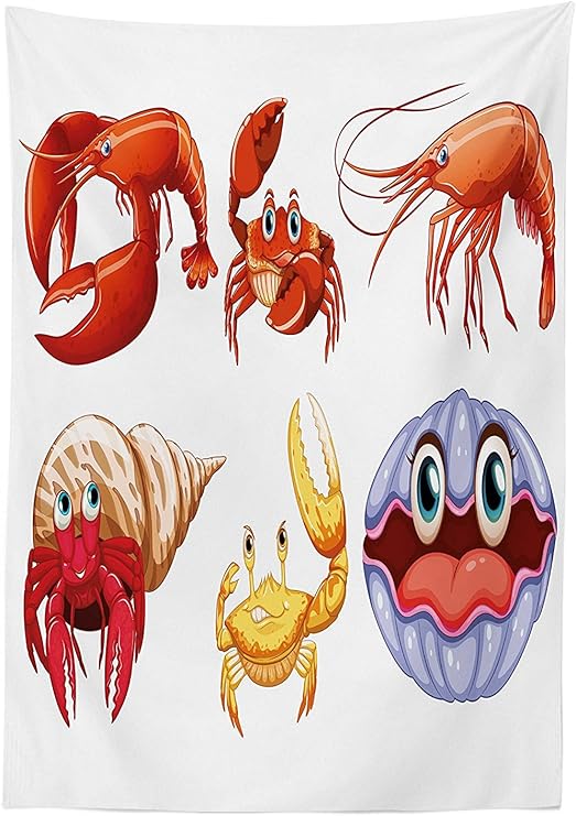 Crabs Decor Tovaglia Illustrazione Di Sea Animals Like Crab Paguro Aragosta Gamberetti Della Stampa Sala Da Pranzo Cucina Tavolo Rettangolare Copertura Arancione Giallo Multy 60w X 102l Inches Amazon It Casa E Cucina