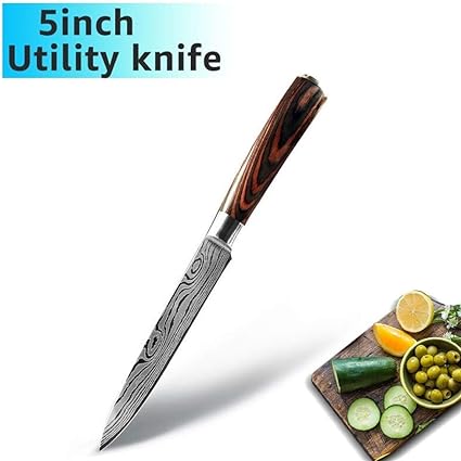 Sjzs Coltello Da Cucina 8 Pollici Giapponesi Coltelli Chef 7cr17 440c Alto Tenore Di Carbonio In Acciaio Inox Damasco Utility Disegno Santoku Set Cleaver Color 5inch Santoku Knife Amazon It Casa E