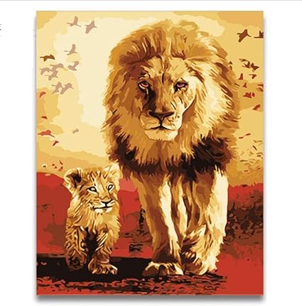 Yuuwo Colorare Per Numeri Africa Immagini Di Leoni E Cuccioli Dipinti Disegno Per Numeri Animali Con Kit Su Tela Per Bambini Framless 40x50cm Amazon It Casa E Cucina