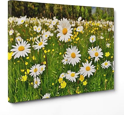 Quadro Su Tela Canvas Intelaiato Pronto Da Appendere Fiori Margherite Bianche Colorate Natura Panorama Paesaggio Campo Fiorito Bouquet 50x70cm Senza Cornice Cod 5211 Amazon It Casa E Cucina