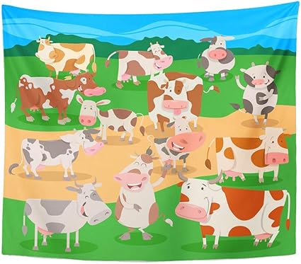 Arazzo Tessuto In Poliestere Stampa Home Decor Vitello Cartone Animato Di Mucche Divertenti Animali Da Fattoria Personaggi Comici Gruppo Allegro Appeso A Parete Arazzo Per Soggiorno Camera Da Letto Do Amazon It Casa