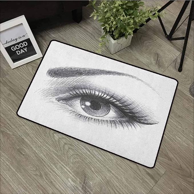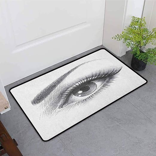 Kinhevao Zerbino Esterno Matita Per Occhi Disegno Di Un Occhio Femminile Fissante Con Ciglia Lunghe E Un Sopracciglio Curvy Tappeti Facili Da Pulire Tappetino Da Bagno Bianco Grigio Amazon It Casa E Cucina