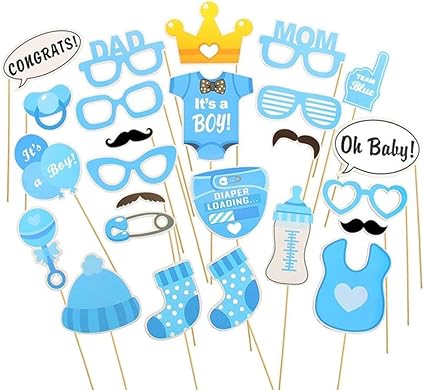 Trixes 25 Pz Set Di Oggetti Di Scena Per Festa Per Il Nuovo Nato Blu E Giallo Vari Disegni Ritagliati A Tema Neonato Amazon It Casa E Cucina