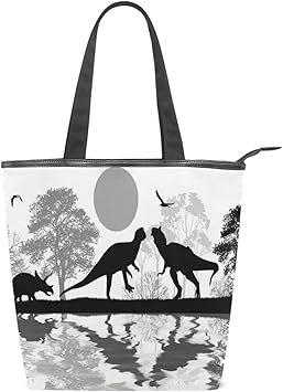 Borsa Da Donna In Tela Con Disegni Di Dinosauri Motivo Paesaggio Di Dinosauri Colore Bianco E Nero Grande Per Scuola Viaggi Palestra Uso Quotidiano Amazon It Valigeria