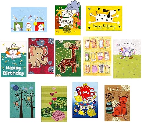Kesote Set Di 24 Biglietti D Auguri Per Compleanno Biglietti Di 6 Stili Carini Disegni Di Elefante Torta E Happy Birthday 24 Carte Con 24 Buste Unicorno Leone Palloncini Carta Blocchi E Quaderni