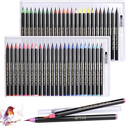 Per Libri Da Colorare Per Adulti Pennarello Ad Acquerello Pennelli Da Disegno Con Pennello Per Colorare Ad Acqua Ohuhuhu Solubile In Acqua 48 Colori A Base Dacqua Manga Fumetti E Calligrafia Penne