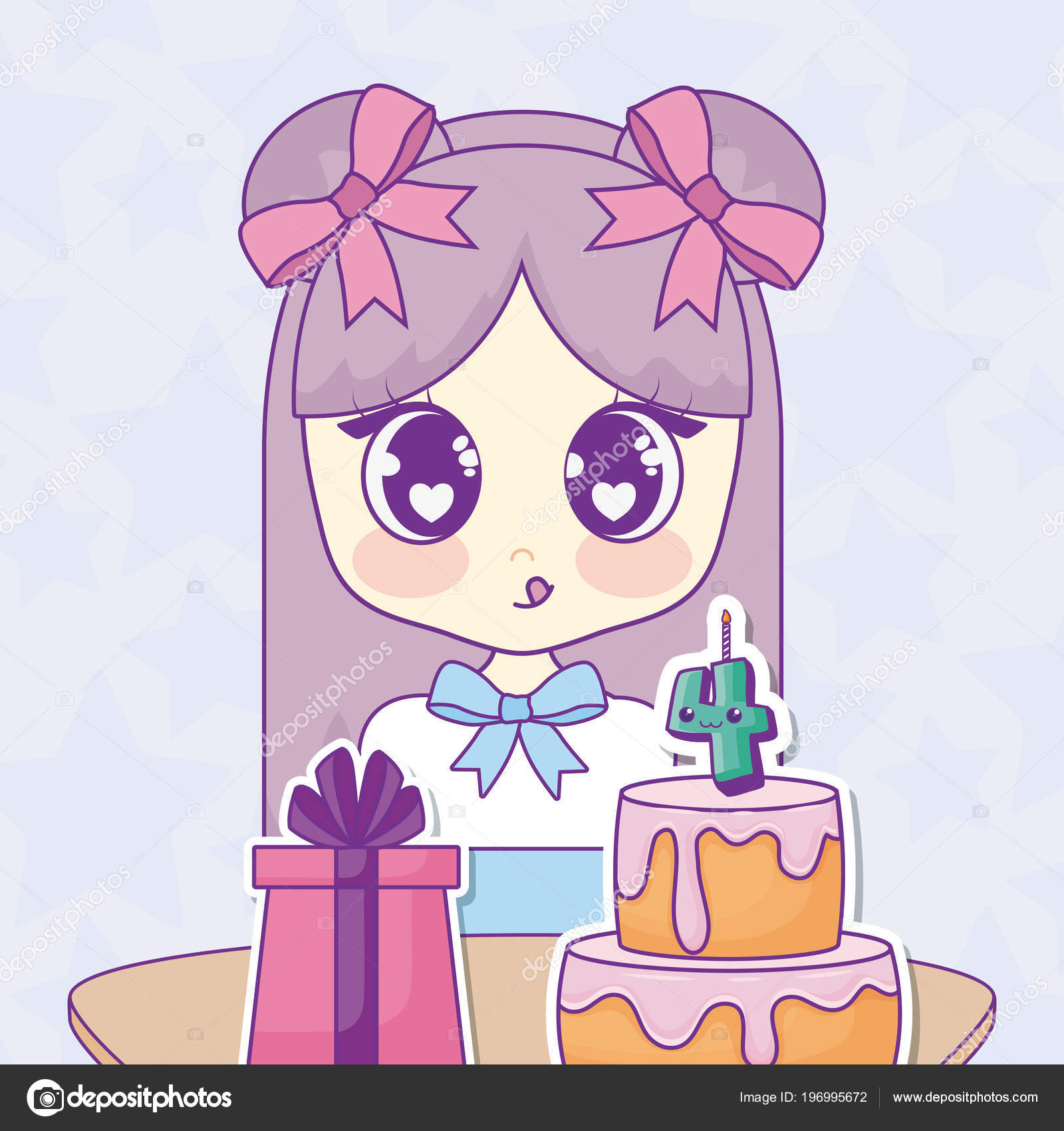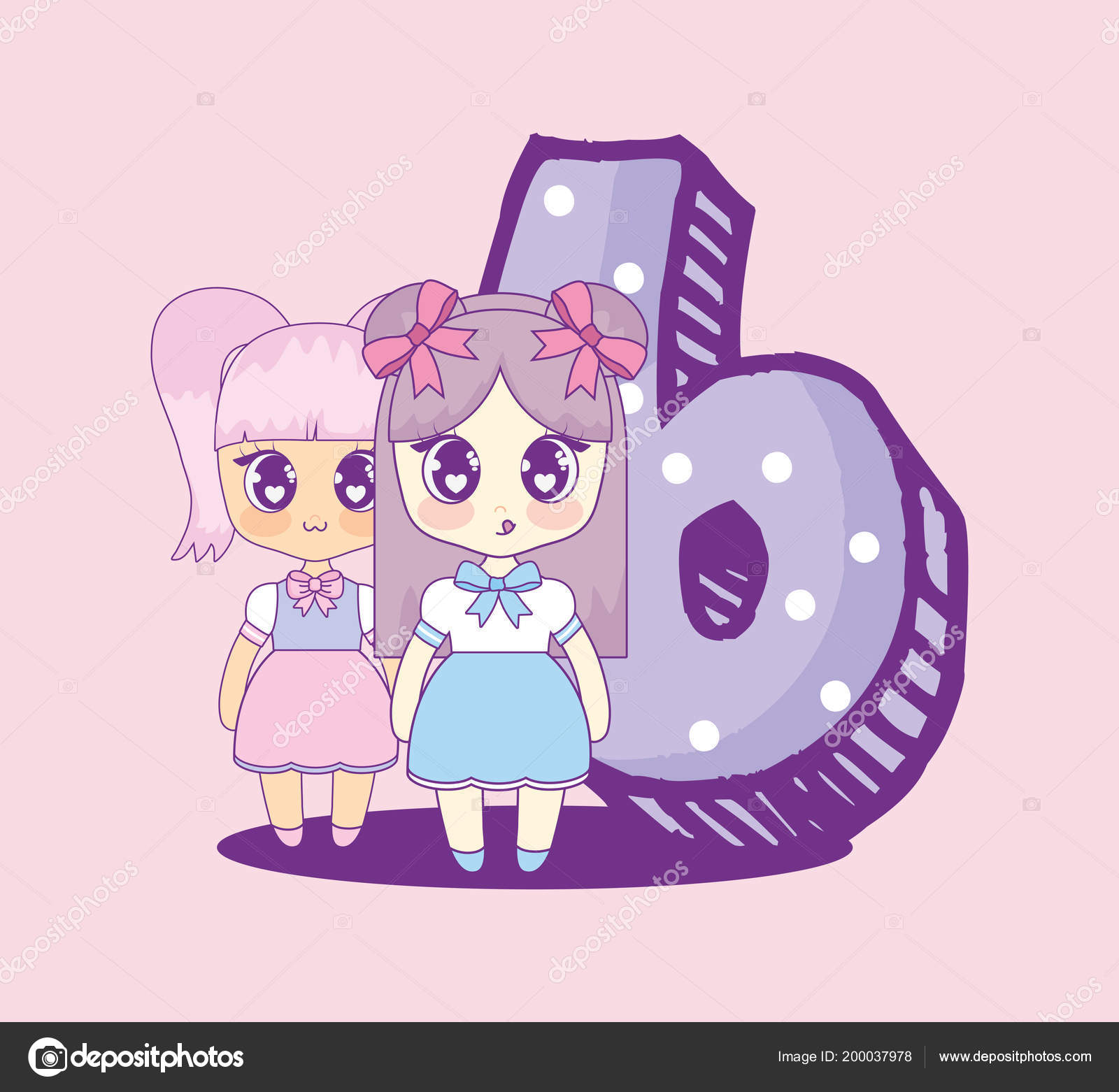 Kawaii Ragazza Disegno Anime Kawaii Set Colorito Sopra Ragazze Illustrazione Fondo Vettore Anime Bianco Icona Canstock