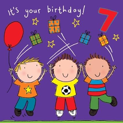Cartolina Per 7 Compleanno Di Twizler Per Ragazzo Con Disegno Di Amici E Regali Finiture In Cristallo Swarovski Eta 7 Anni Cartolina Di Compleanno Per Bambini E Ragazzi Amazon It Casa E Cucina