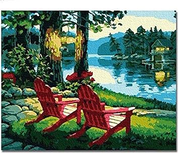 Ygghj Sedie Doppie Sul Lago Dipinti Con Numeri Immagini Dipinte A Mano Di Paesaggi Digitali Dipinte A Mano Disegni Da Colorare Con Numeri Disegno Arte 40x50cm Incorniciato Amazon It Giochi E Giocattoli