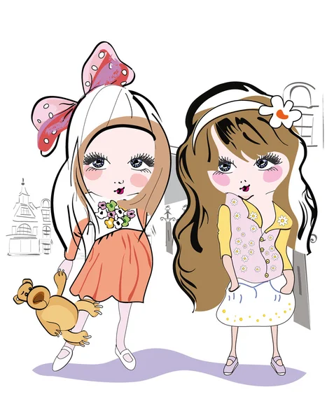 Sorelle Due Fratelli Vettore Due Illustrazione Cartone Animato Canstock