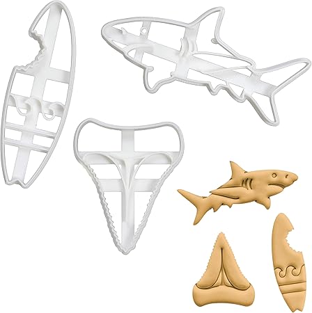 Set Di 3 Formine Per Biscotti A Tema Shark Attack Disegni Grande Squalo Bianco Dente Di Squalo E Tavola Da Surf Bitten 3 Pezzi Bakerlogy Amazon It Casa E Cucina