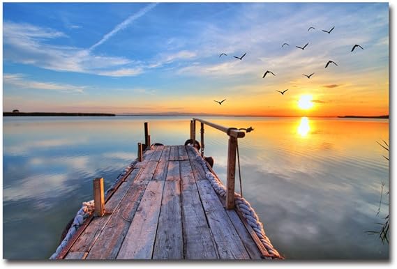 Lotuslife Stampato Quadri Su Tela Paesaggio Al Tramonto Del Lago Disegni Di Uccelli Nel Cielo Pittura A Olio Per Camera Da Letto Decorazione Framed 24x16inch Amazon It Casa E Cucina
