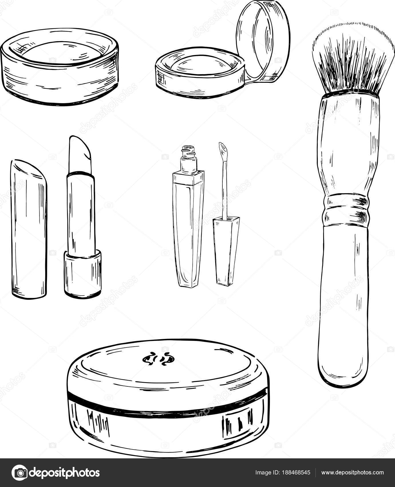 A Collection Of Sketches On Make Up Cosmetics Lipstick Mascara Powder Eye Shadow Brushes Tatuaggi Rossetto Disegni A Mano Tatuaggio Dello Scorpione