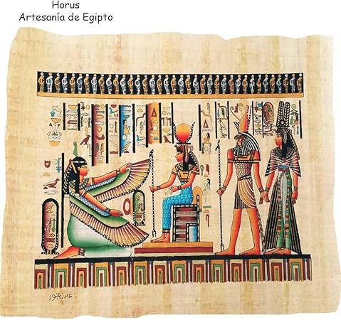 Maet Isis Horus Con Nefertari Su Papiro Originale Da 33 X 43 Cm Realizzato E Dipinto A Mano In Egitto Rif 24h B Amazon It Amazon It