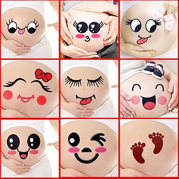 Originaltree 2 Adesivi Per Pancione Della Gravidanza Con Disegni Divertenti Di Espressioni Facciali Accessori Per Fotografia Colore Casuale Amazon It Casa E Cucina