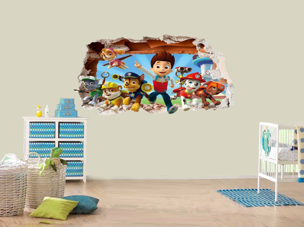 Paw Patrol Adesivi Murali Rotti 3d Per Camera Da Letto Ragazzo E Ragazza Decalcomania Murale Art Dimensioni Grande 75 Cm X 55 Cm Sticker Da Muro Cameretta