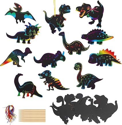 Festa Di Compleanno Forniture Di Gioco Ornamenti 48 Pezzi Disegni In Carta Grattare Arcobaleno Regalo Compleanno Dinosauro Nero Fai Da Te Con 48 Pezzi Nastri Colorati E 12 Pezzi Stilo In Legno Set Per