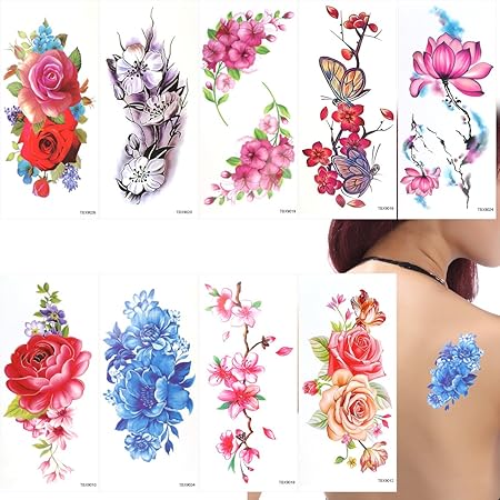 Rosenice Tatuaggio Temporaneo 9 Fogli Farfalla Fiori Di Ciliegio Tatuaggi Per Le Donne Amazon It Salute E Cura Della Persona
