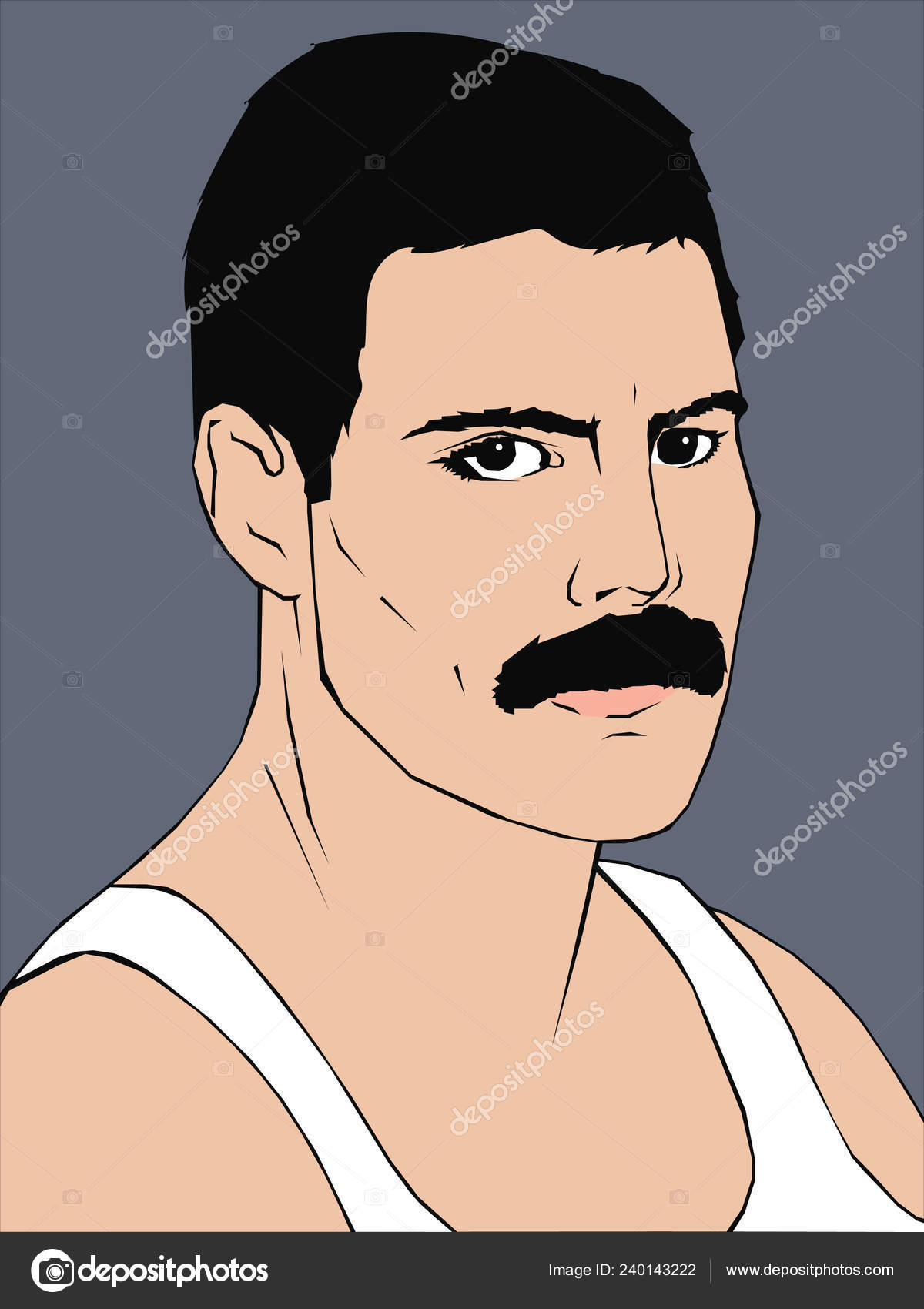 Freddie Mercury Vector Cartoon Illustration Black And White Editorial Photo Illustration Of Cartoon Singer 145427436