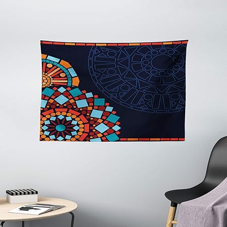 Dark Blue Tapestry By Ambesonne Disegno Geometrico Circolare Mandala Motivi Quadro Mosaico Marocchino Stile Etnico Da