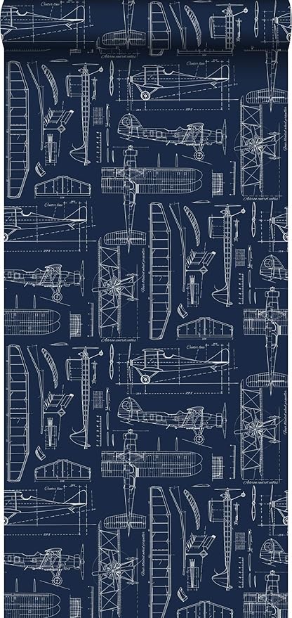 Carta Da Parati Pittura A Gesso Disegni Di Costruzione Degli Aeroplani Blu Scuro 128810 Di Estahome Nl Amazon It Fai Da Te