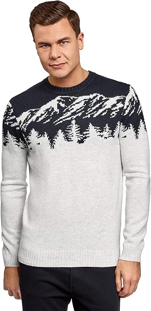 Oodji Ultra Uomo Maglione In Jacquard Con Disegno Bianco It 44 46 Eu 46 48 S Amazon It Abbigliamento