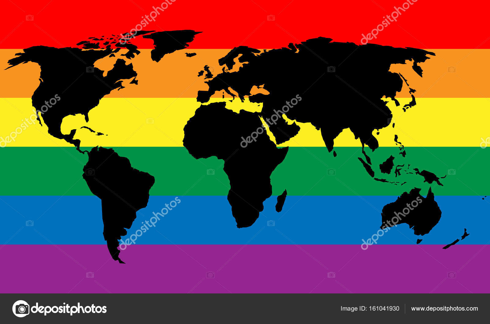Black World Map Silhouette On Lgbt Rainbow Pride Flag Background Lesbian Gay Bisexual And Transgender Stylish Design Element Simple Flat Vector Illustration Stock Vector C Pyty 161041930