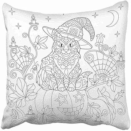 Crayo Halloween Disegni Da Colorare Gatto Con Cappello Zucca Lanterne Di Ragno Con Candele Luna E Stelle Fodera Per Cuscino A Mano Libera Fodera Per Cuscino Dimensioni 45x45cm Amazon It Casa E Cucina