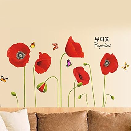 Adesivi Murali Fiori Di Papavero Camera Da Letto Tenstickers