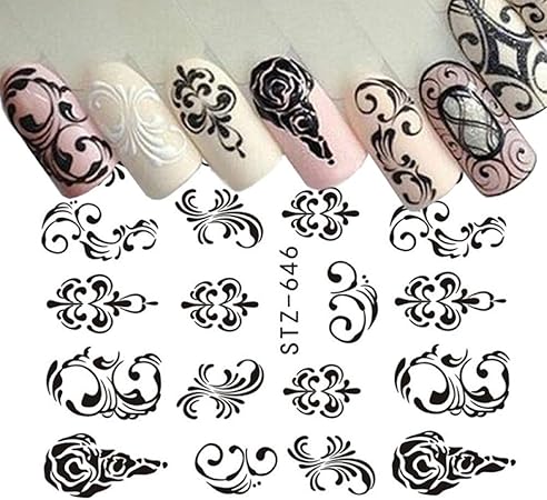 Zhaozx 1 Fogli Di Trasferimento Dell Acqua Adesivi Per Unghie Modello Disegni Neri Semplici Consigli Di Moda Fai Da Te Per Decorazioni Per Filigrane Di Nail Art Amazon It Sport E Tempo Libero
